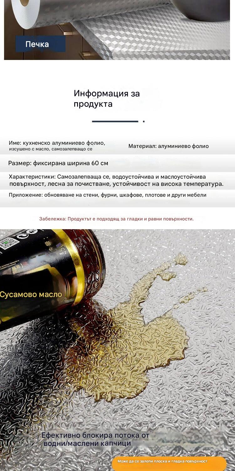 🏠💦【Половин цена за ограничено време】 Самозалепващи кухненски стикери за стена, водоустойчиви и влагоустойчиви (Ширина 40/60 см × Дължина 3 м)
