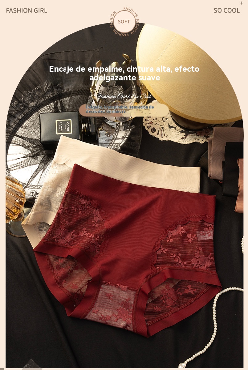 【€33】Un conjunto de 5 piezas: negro + burdeos + beige + marrón + rojo ladrillo --- Ropa interior de encaje sin costuras de alta elasticidad para mujer para control de abdomen, modelado de glúteos y bragas de levantamiento